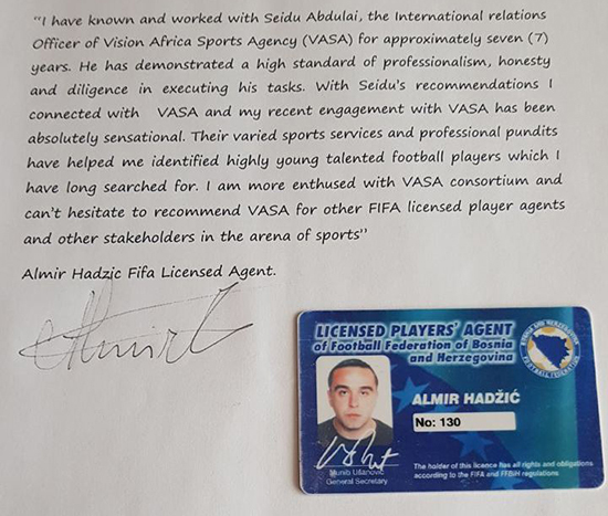 Below are some of the agents Vision Africa Sports Agency (VASA) works with.